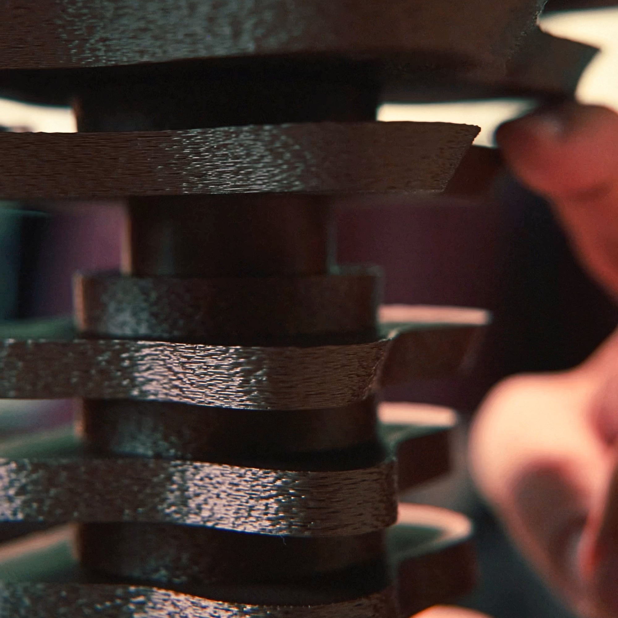 We add reclaimed wood fibres and recycled PET-G wherever performance allows, cutting virgin plastic.