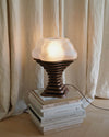 TERRA MINI takes a familiar table-lamp form and quietly reshapes it with natural geometry. Branch-like pillars rise to a crown patterned like eroded stone and sea-worn shells, casting organic shadows at night.